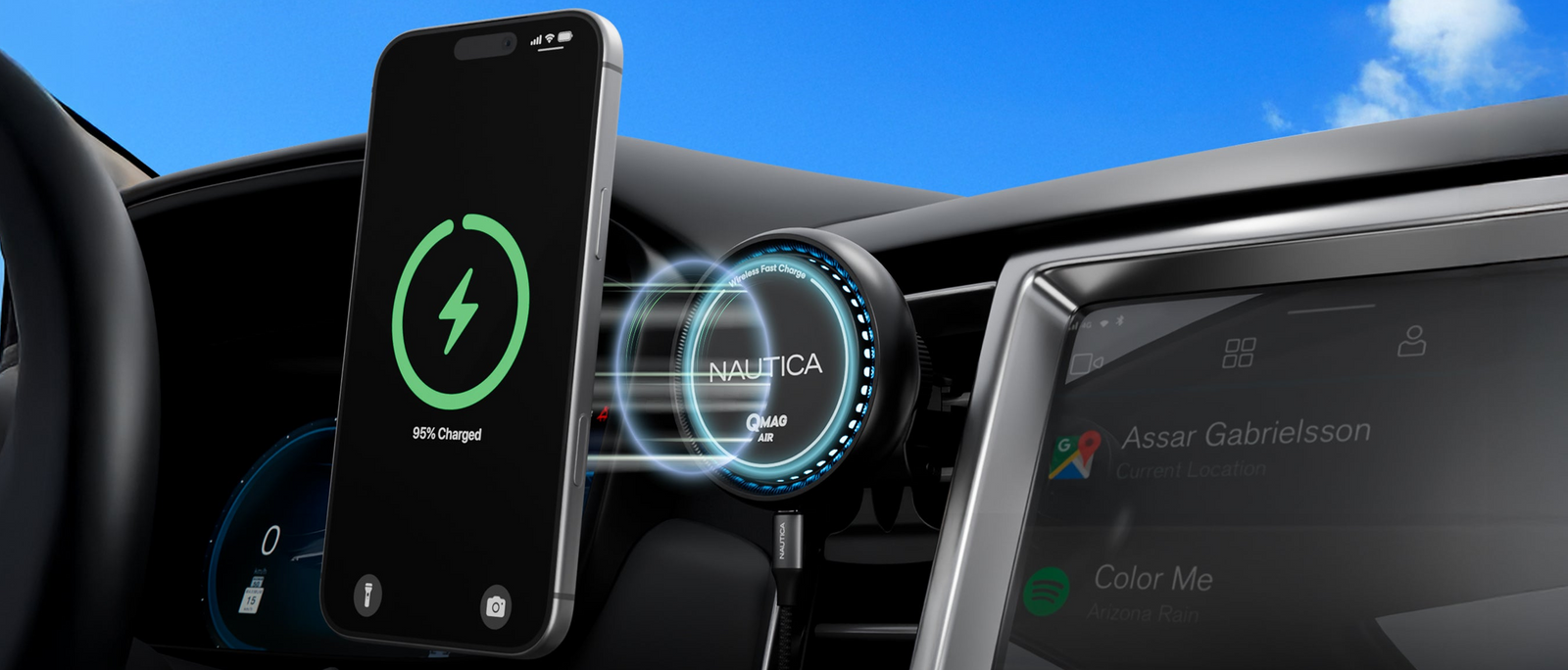 This all-in-one solution functions as both a wireless charger and a magnetic phone mount, providing hands-free access for navigation, calls and media control.