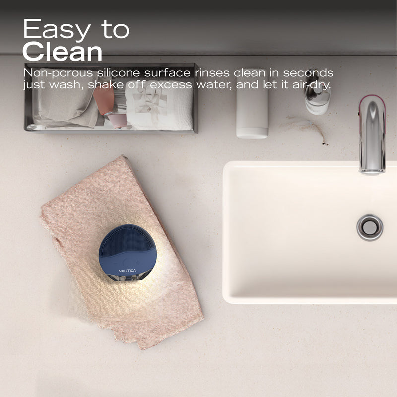 With a sleek design, the Nautica Skin Care Sonic Facial Cleansing Brush not only looks great but also performs exceptionally. Utilizing silicone ensures that the brush is hygienic, resisting the buildup of bacteria commonly found in traditional cleansing brushes. Experience a refreshing cleanse as the brush's sonic technology loosens makeup, dirt, and excess oils.