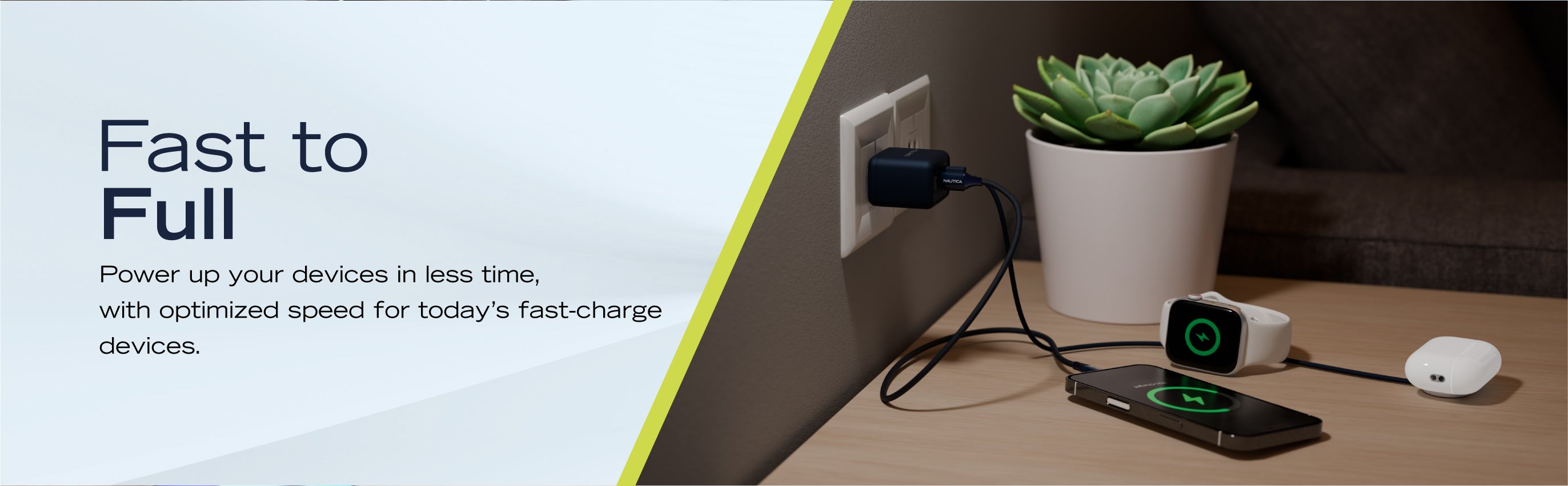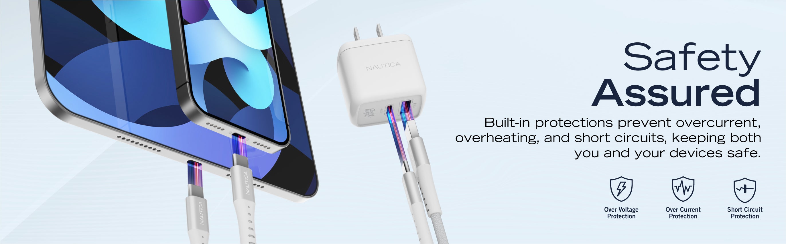 In conclusion, the Nautica 30W Dual Port Wall Charger is a perfect blend of performance, safety, and convenience. Bring home this essential accessory to ensure you stay powered throughout your day.