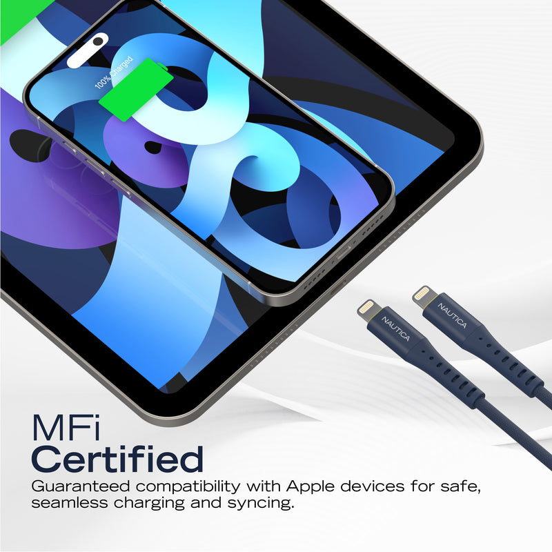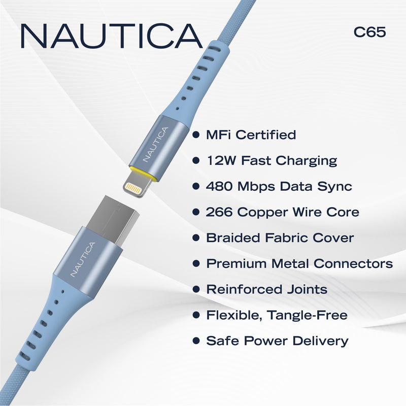 Perfect for all your Apple devices, the C65 is fully MFi-certified for seamless compatibility with iPhones, iPads, and other Lightning-equipped Apple products. It combines fast, efficient charging, safe power delivery, and stylish design, all in one convenient package. Whether you're charging at home, on the go, or at work, the Nautica C65 is the cable that does it all.