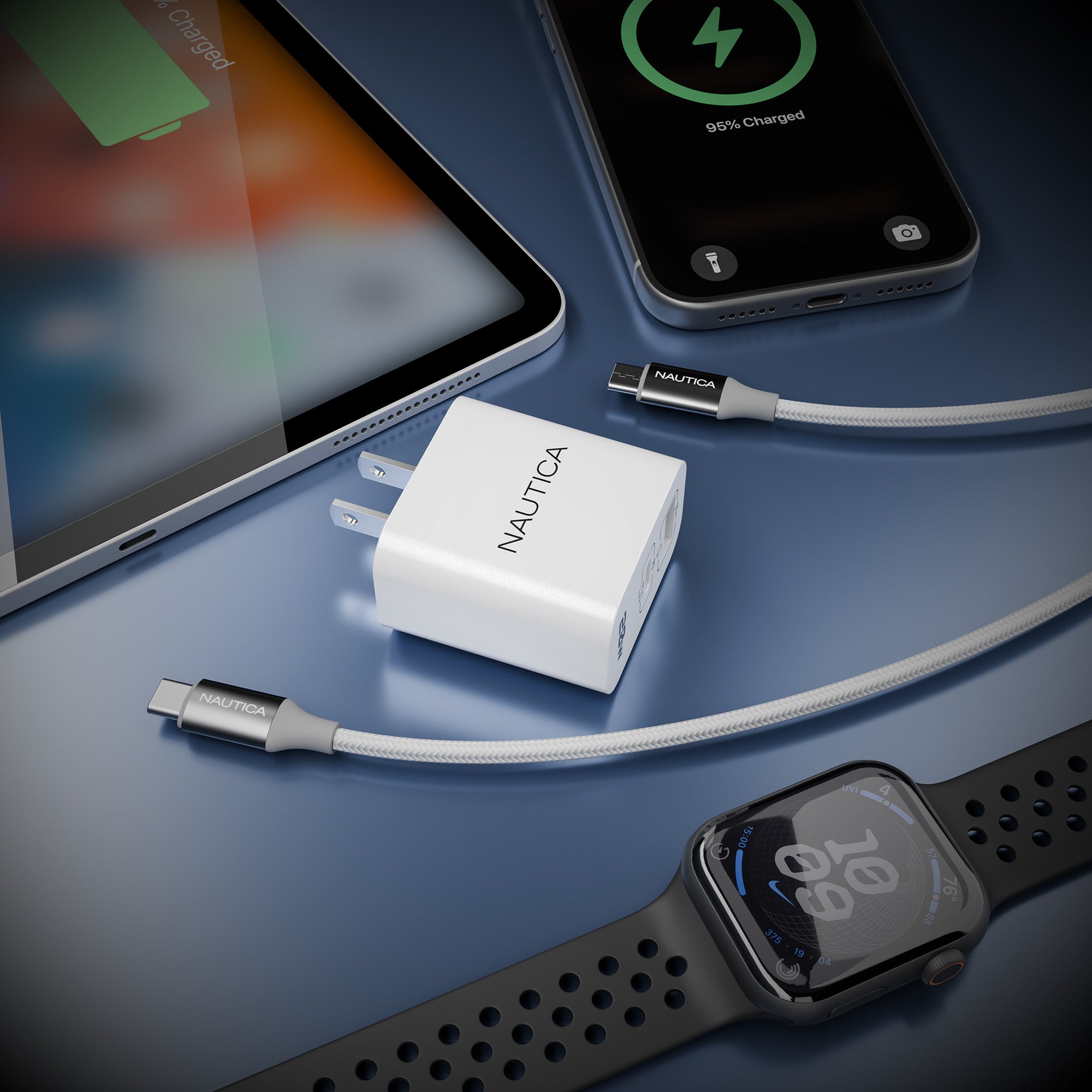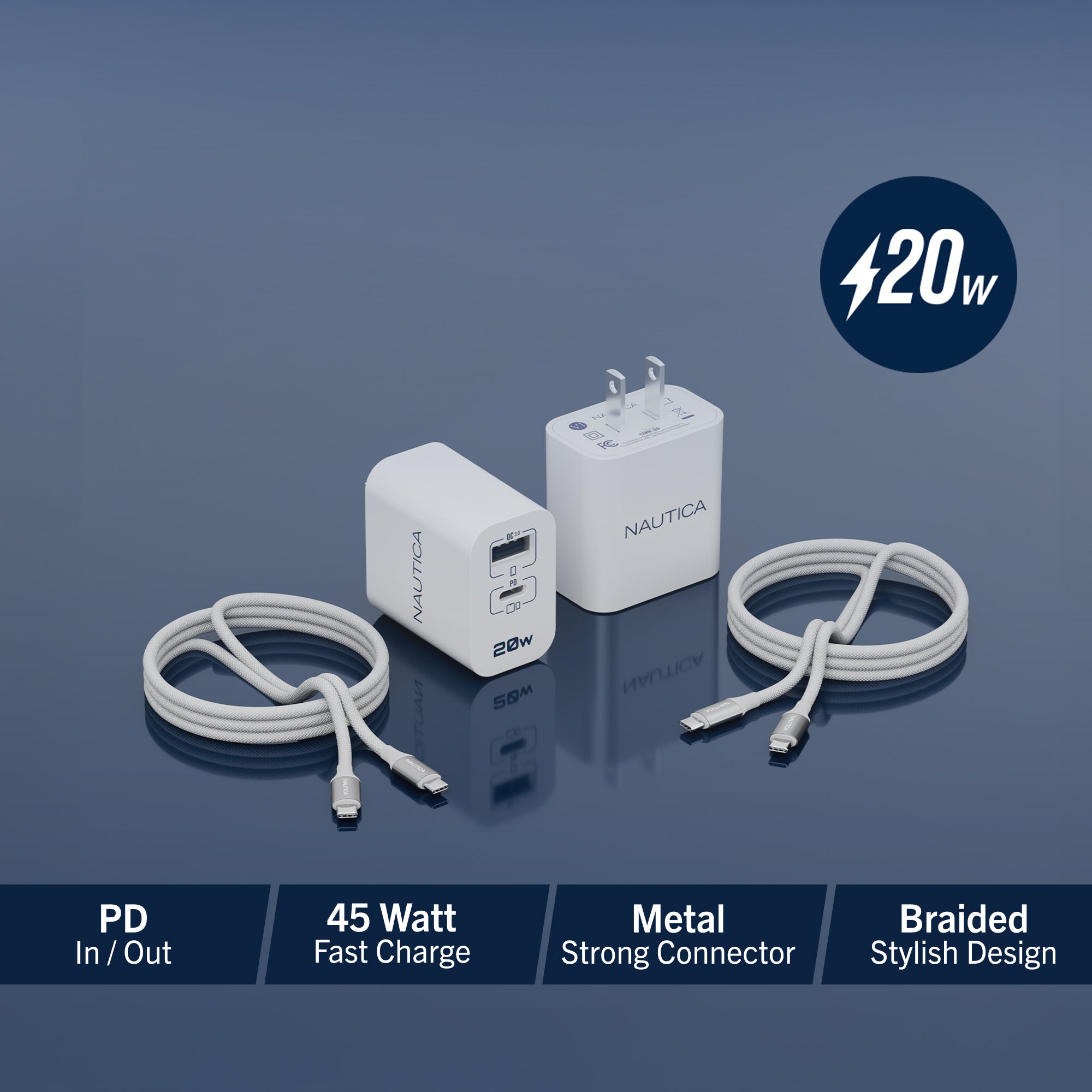 Get powerful and versatile charging with the Nautica Turan Core 20 Charging Bundle. This all in one set includes two 20W fast USB C wall chargers with Power Delivery and Quick Charge 3.0 support, plus two 60W USB C to USB C cables for quick and efficient power delivery. Compatible with the latest iPhone, iPad, Samsung, Google Pixel and other USB C devices, it delivers dependable fast charging and stable data transfer wherever you go. Compact and travel friendly, this bundle is ideal for daily use at home, in the office or on the road, with built in safety features to protect your devices.
