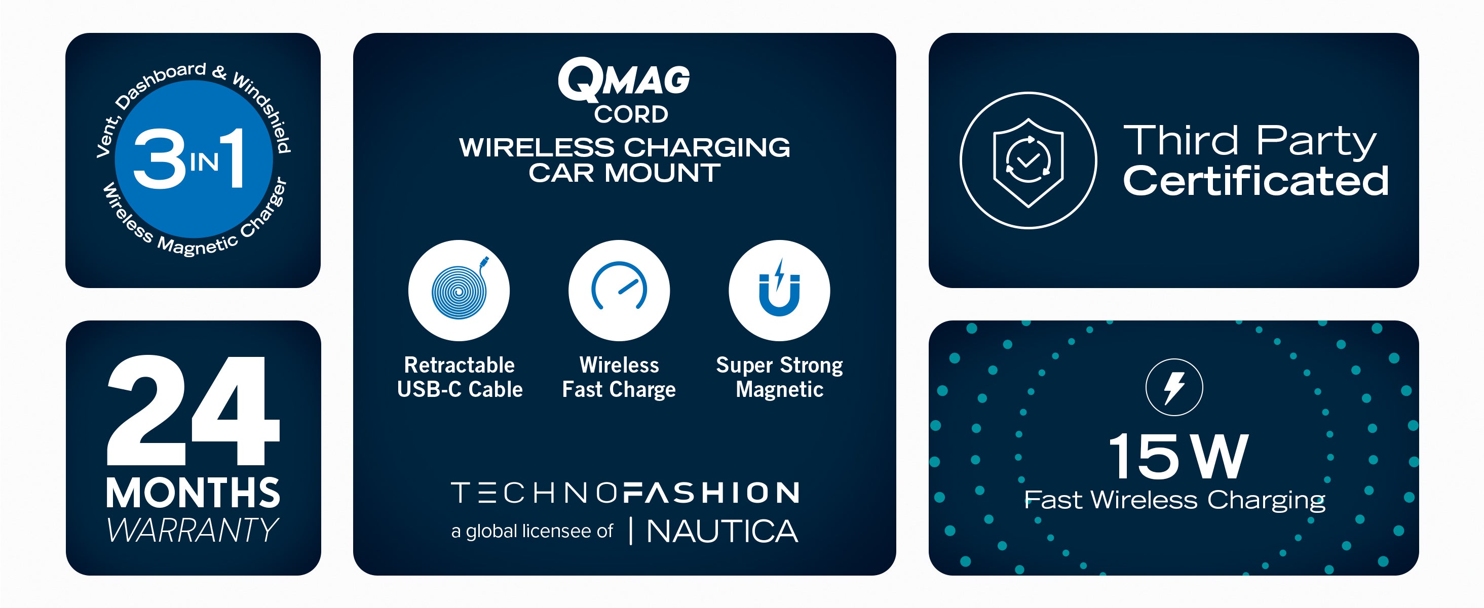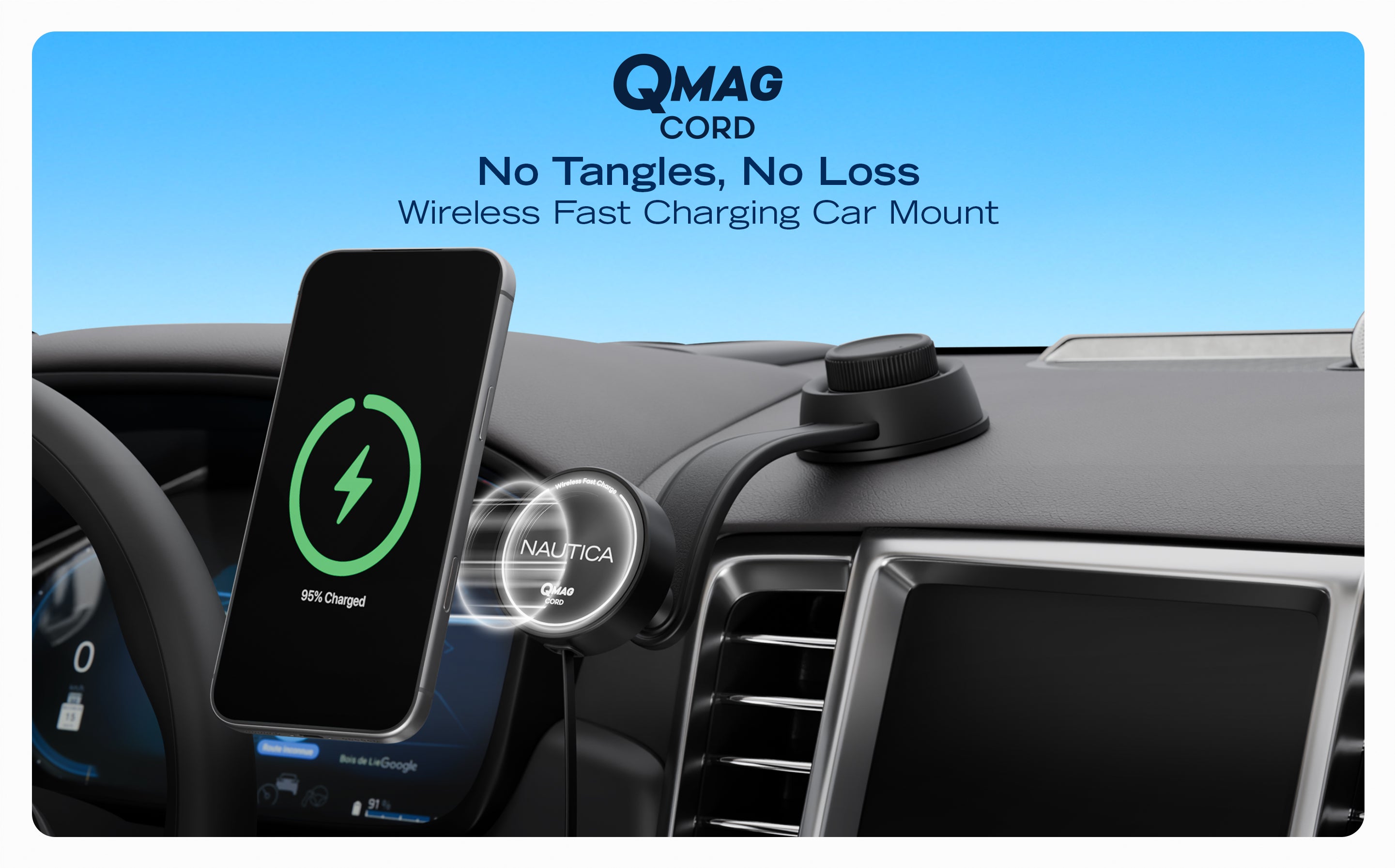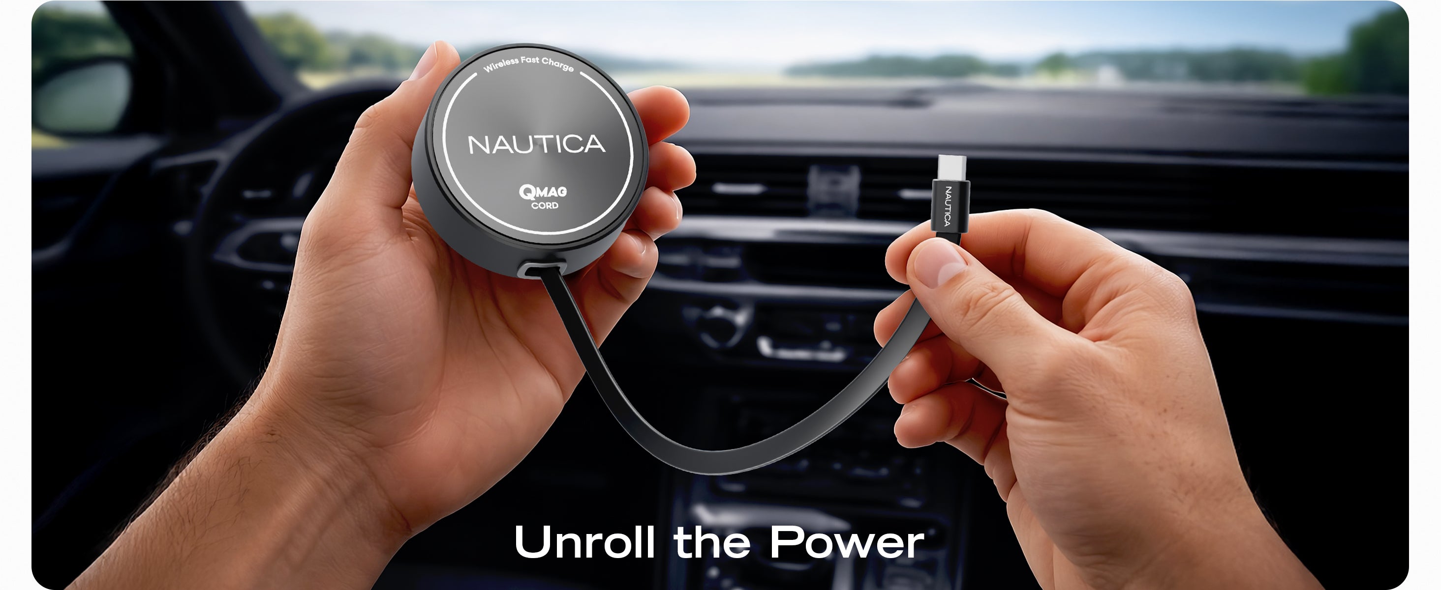 The Nautica Turan QMAG Lite Wireless Magnetic Car Charger with built in retractable USB C cable is designed to deliver reliable 15W wireless fast charging while keeping your phone securely mounted in your car. The integrated retractable cable removes the need for extra accessories and helps maintain a clean and organized driving setup.