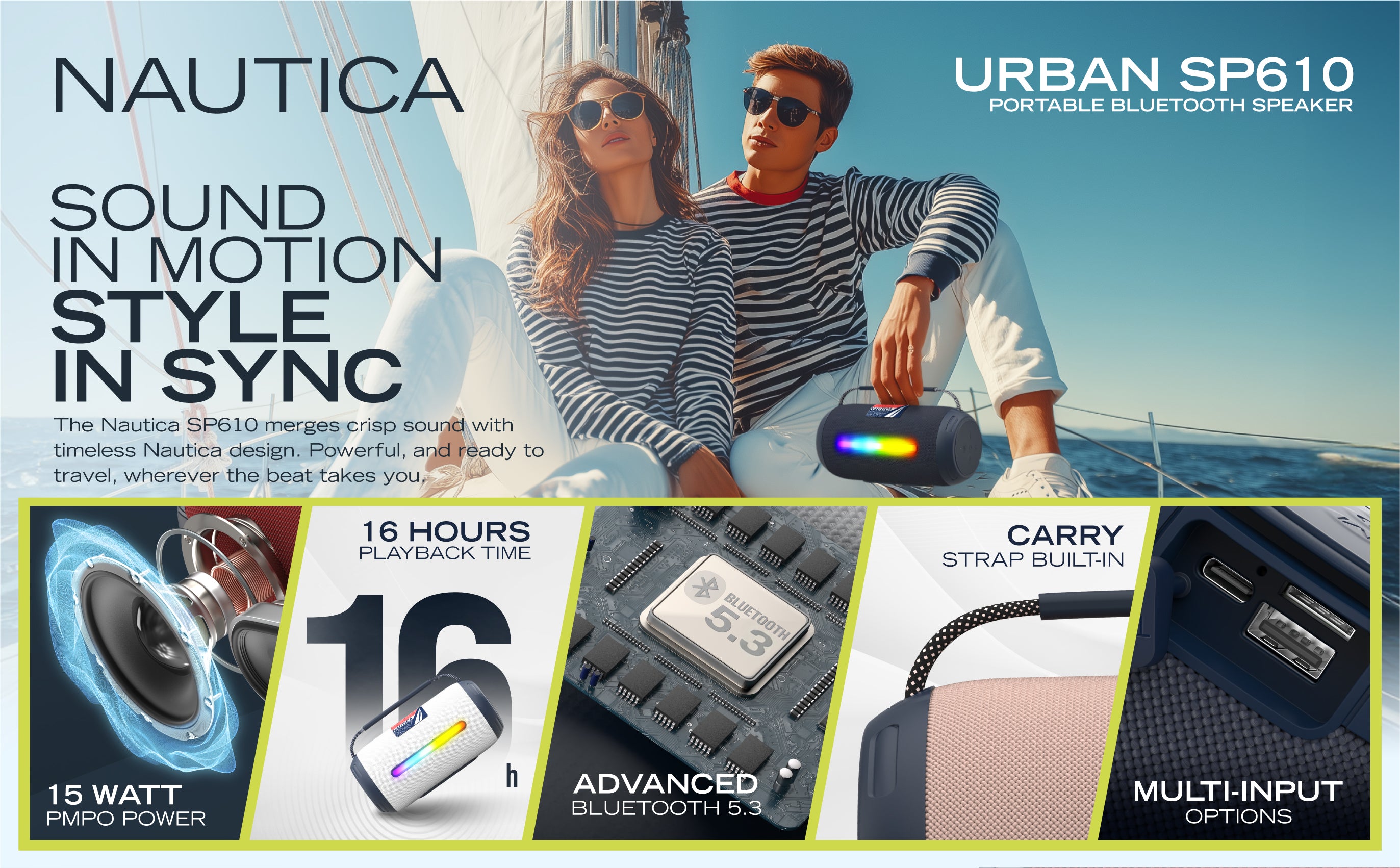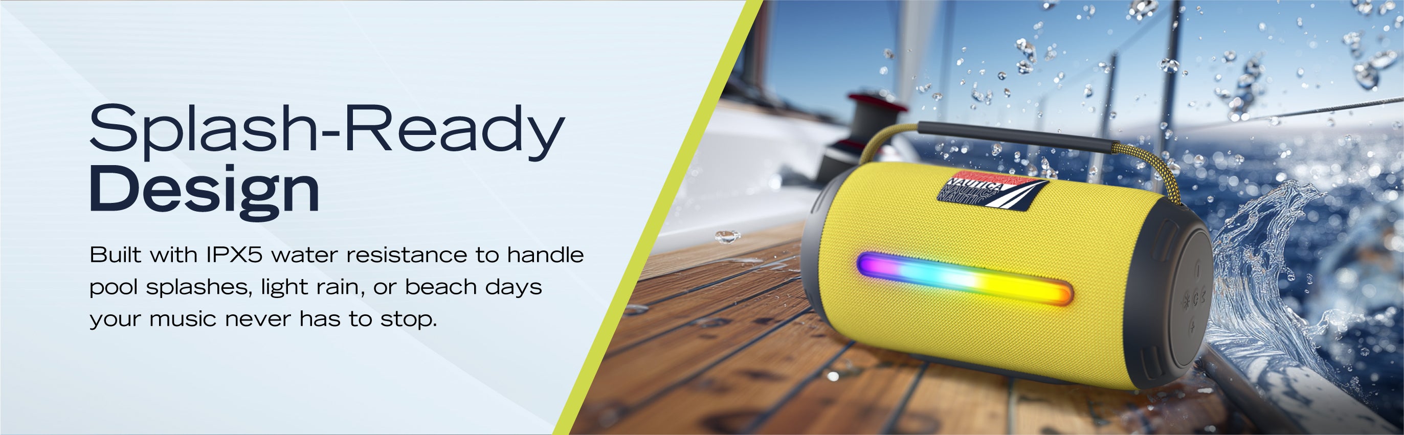 The Nautica Portable Bluetooth Speaker is more than just a device. It’s a trusted partner for outdoor activities, enhancing moments and creating memories. Enjoy powerful sound, reliable performance, and convenient features packed in a splash-proof design. Choose the Nautica Portable Bluetooth Speaker and bring your outings to life.