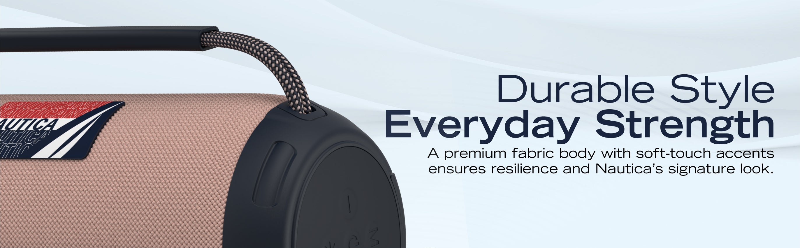 The design exudes style, making it not just functional but also a chic accessory for outings. Its sleek, modern look complements any outdoor gear. The Nautica branding adds a touch of elegance and quality assurance to the speaker.