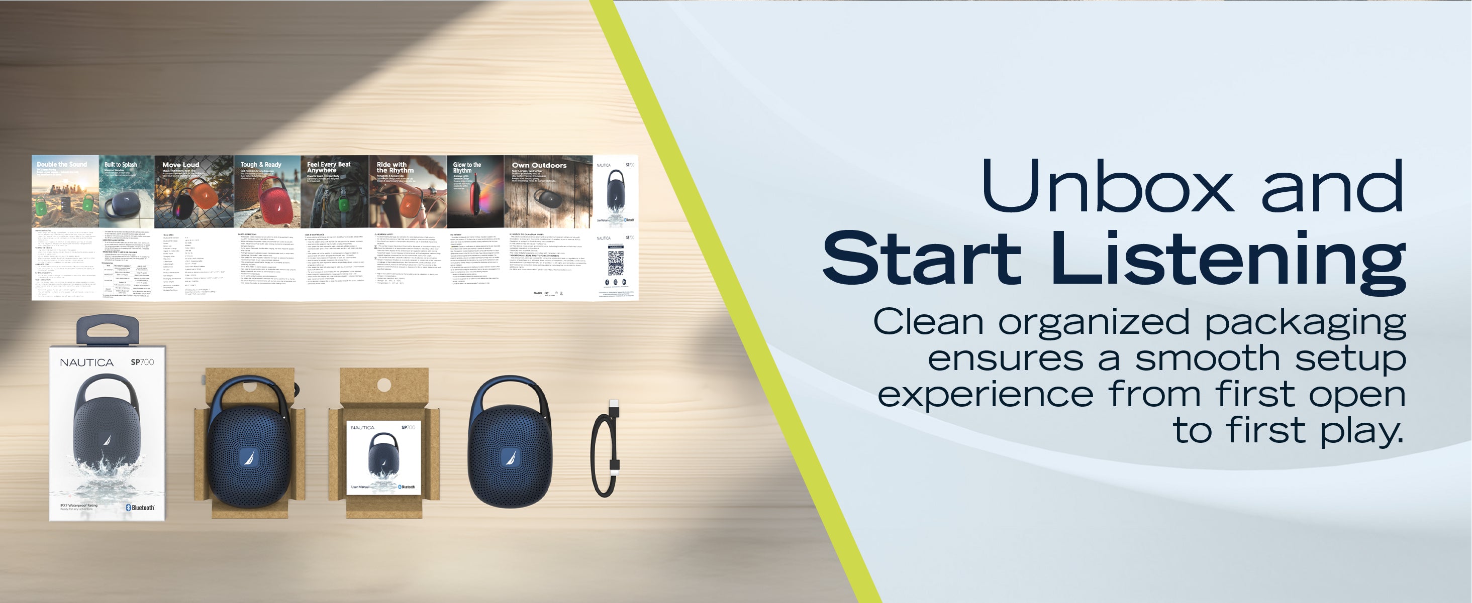The Nautica Nayman SP700 is a waterproof portable Bluetooth speaker designed for powerful 16W performance in a lightweight, compact body. It delivers crisp highs, rich mids and deep bass for an immersive listening experience. With an IPX7 waterproof rating, it withstands rain, splashes and full immersion up to 3.3 ft for 30 minutes, making it ideal for the beach, poolside, shower, hiking and outdoor adventures. The 10 hour battery and Bluetooth 5.3 provide fast pairing and reliable all day play, while USB-C offers convenient charging. Pair two units wirelessly with TWS mode for true stereo sound. Built in RGB ambient lighting adds a dynamic visual touch that enhances mood and atmosphere. Available in multiple colors, the SP700 is designed to keep your music clear, bold and ready for every moment.
